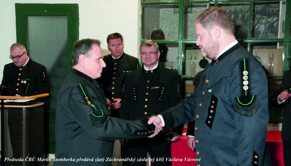 V síni tradic Dolu Anselm na ostravském Landeku proběhlo koncem minulého roku slavnostní oceňování báňských záchranářů. Předseda Českého báňského úřadu Martin Štemberka předal Záchranářské záslužné kříže 22 záchranářům. Mezi vyznamenanými byli záchranáři pracující na dolech společnosti OKD, záchranáři ostravské HBZS a také dva naši kolegové, zaměstnanci DIAMO, s. p., o. z. ODRA. Václavu Vávrovi byl udělen zlatý Záchranářský záslužný kříž a Miloš Hlavička dostal bronzový Záchranářský záslužný kříž.
