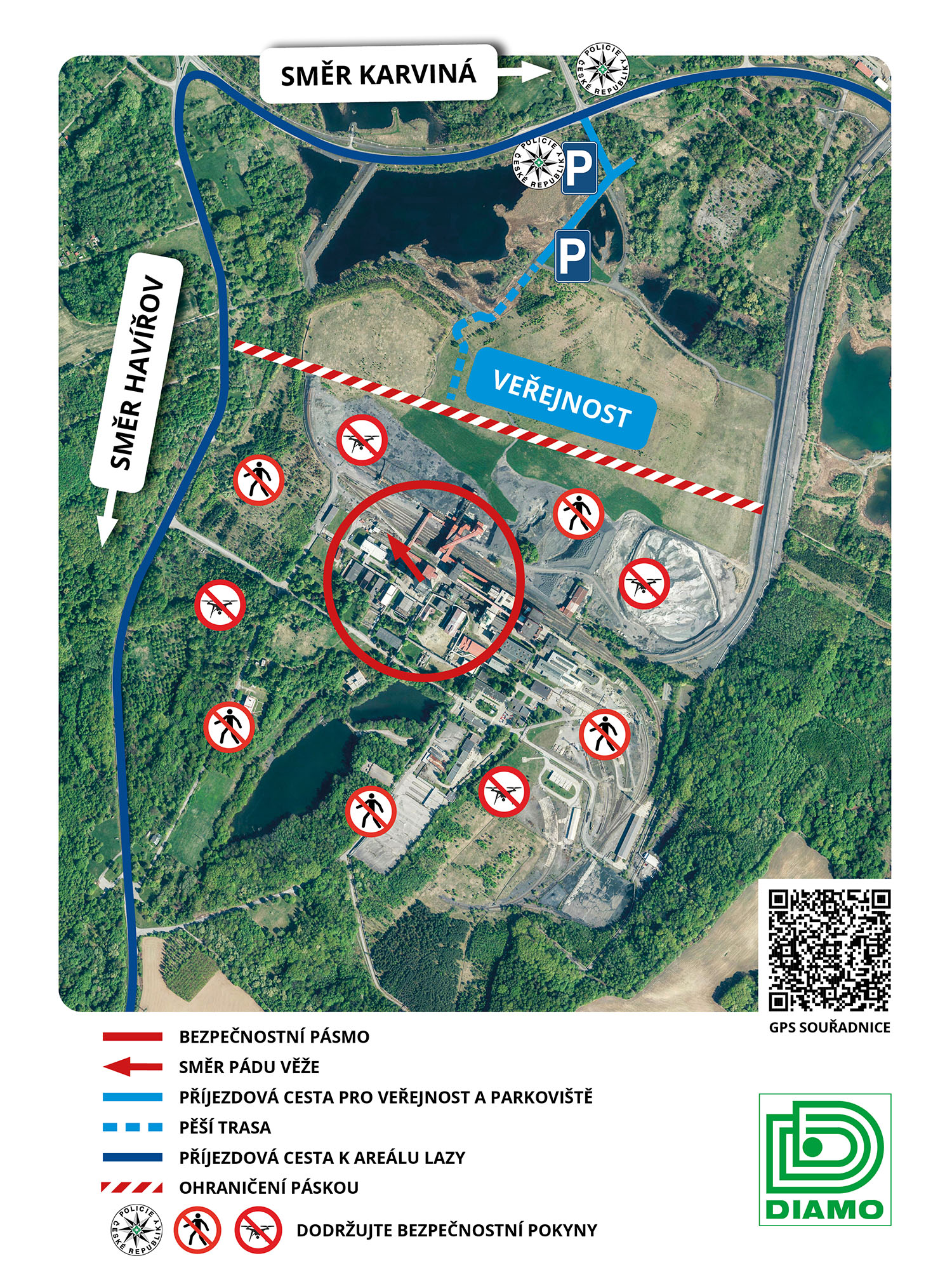Veřejnost událost může sledovat na vybraném bezpečném místě (viz mapa). Odbočit na
