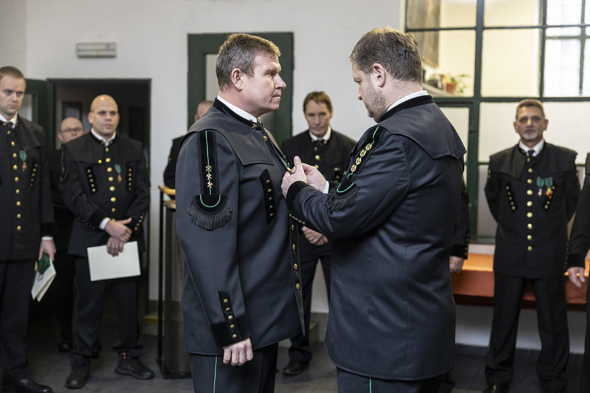 Ve čtvrtek 27. 11. 2025 si v Landek Parku připomněli, jak výjimečná a náročná je práce báňských záchranářů. Celkem 28 mužů převzalo Záchranářský záslužný kříž – ocenění za odvahu, profesionalitu a roky služby, během nichž často riskují vlastní život, aby zachránili něčí jiný. (foto: Ing. Jiří Zerzoň)