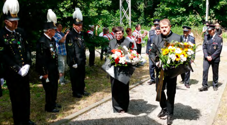 kapličce, kterou nechal postavit hrabě Heinrich Larisch-Mönnich nad epicentrem výbuchu. Zde byla požehnána socha, kterou věnovala místní farnost, promluvili hosté pietního aktu a kladly se věnce.
